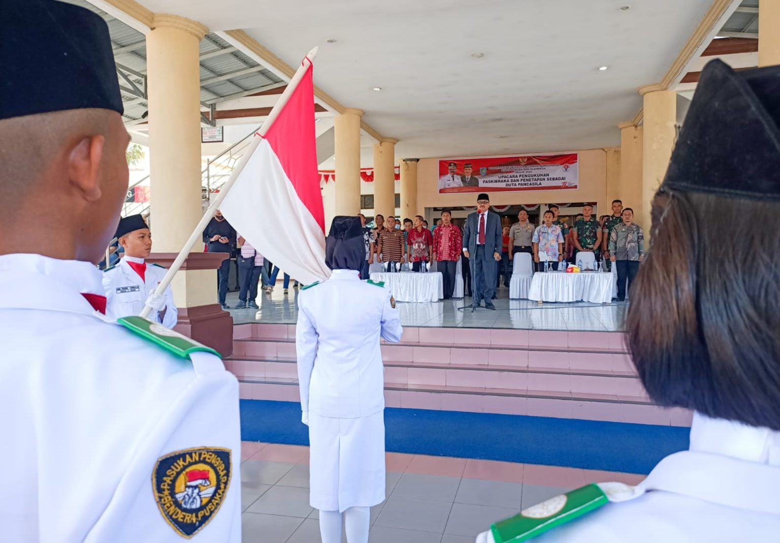 Dalam pengukuhan itu, para anggota Paskibraka juga ditetapkan sebagai duta pancasila oleh Pj Bupati Limi Mokodompit.