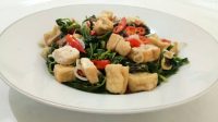 5. Ambil piring saji dan letakkan bayam yang sudah dimasak di dalamnya. Kemudian taruh tahu di atasnya dan siap disajikan.