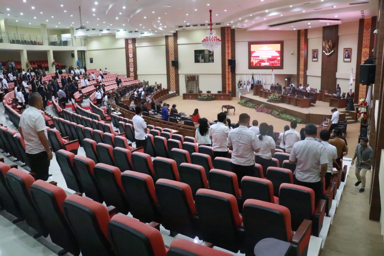 Paripurna yang dipimpin langsung Ketua DPRD Sulut Dr. Fransiskus Andy Silangen didampingi Wakil Ketua James Arthur Kojongian tersebut dihadiri oleh Wakil Gubernur Drs Steven OE Kandouw.