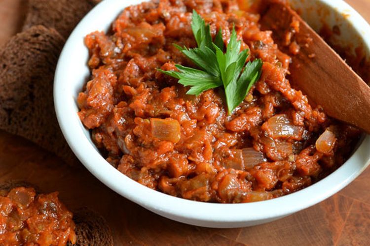 Jika biasanya salad yang biasa di santap di Indonesia dibuat dari aneka sayuran segar ataupun buah, maka lain halnya dengan salad khas Ukraina yang dibuat dari campuran terong ungu dan tomat.