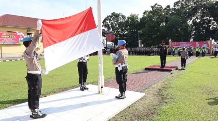 Bertindak selaku komandan Upacara IPTU Hardinur dan diikuti oleh seluruh personil Polres Labuhanbatu.