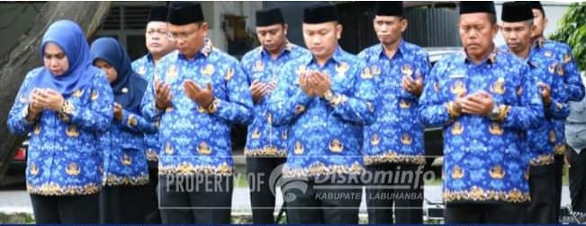 Upacara yang di ikuti Asisten II kabupaten Labuhanbatu Drs. Ikramsyah Putra, MM, Asisten III Labuhanbatu Zaid Harahap, Para Kepala OPD, Pejabat Eselon III dan IV dan para staff.