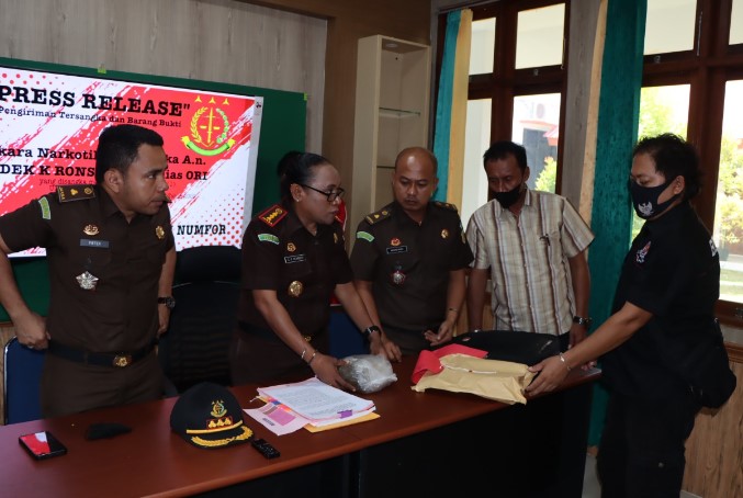 TNews, BIAK – Penyidik dari Satuan Narkoba Kepolisian Resor Biak Numfor menyerahkan tersangka dan berkas perkara kasus penyalahgunaan narkoba jenis ganja seberat 412,7 gram kepada Jaksa Penuntut Umum (JPU) di Kejaksaan Negeri Biak Numfor pada Selasa (18/10/2022)
