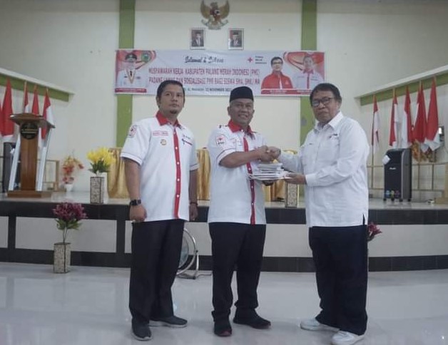 “Pengurus PMI mewakili dari berbagai unsur, ada dari BNPB, Kesehatan, relawan yang saling melengkapi dan mendukung dalam kesiapsiagaan dan penanganan bencana serta menangani tugas kemanusiaan lainnya. Dan kepada siswa SMA sederajat yang akan mengikuti sosialisasi Palang Merah Remaja selaku cikal bakal relawan PMI masa depan, diharapkan bisa mengambil ilmu pada kegiatan ini,” tandas Plt. Bupati