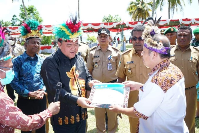 TNews, BIAK NUMFOR PAPUA – Bupati Biak Numfor bersama Dirjen P2P Kemenkes RI didampingi pimpinan UNICEF Indonesia lakukan deklarasi 105 Kampung Stop Buang Air Besar Sembarangan dan Pencanangan Eliminasi Malaria Tahun 2024 di Kabupaten Biak Numfor, di Kampung Samber Distrik Yendidori, Senin (7/11)