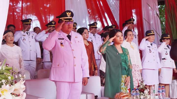 Bendera Mereh Putih kecil di tangan Siswa-siswa Sekolah Dasar, langsung bergoyang-goyang ketika rombongan Bupati dan Wakil Bupati memasuki kompleks lapangan upacara, cuna memulai prosesi peringatan hari bersejarah di Minahasa Utara.