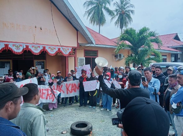 Sementara itu massa aksi menuju kantor DPRD Touna masih dengan tuntytan yang sama.Pendemo ditemui oleh anggota DPRD Touna Ja’far M Amin dan Samsari Pay.