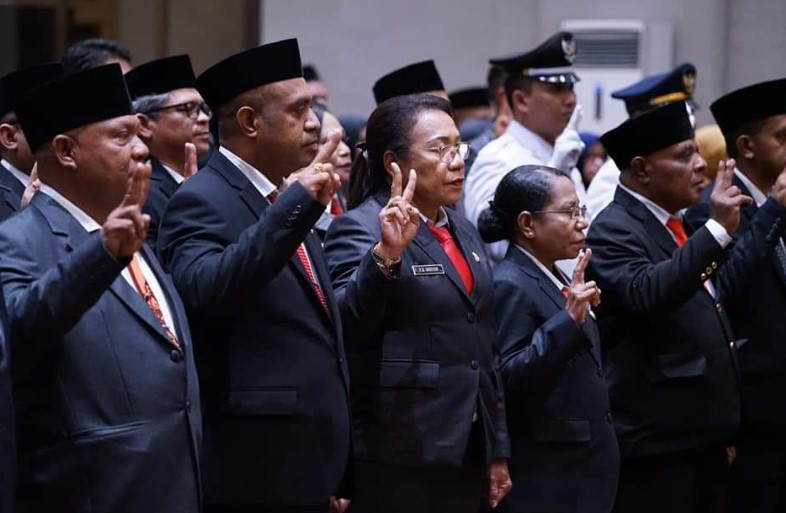 TNews, BIAK NUMFOR – Bupati Herry Ario Naap, S.Si.,M.Pd kembali melakukan pelantikan dan pengambilan sumpah terhadap jajaran pejabat eselon II, III dan IV, bertempat di KSL Grand Ballrom, Kamis (29/12).