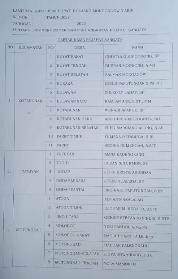 Berikut Nama-nama Pjs Sangadi yang Baru Saja Dilantik :