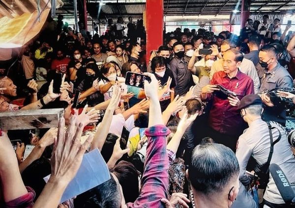 Di pusat kegiatan perdagangan itu, Jokowi kemudian berdialog dan berinteraksi dengan pedagang dan pembeli untuk mengetahui dan memantau dampak inflasi terhadap harga bahan pokok di wilayah Minut dan tak lupa memberikan bantuan ke pedagang serta membagikan kaos baik kepada pedagang maupun masyarakat pengunjung.