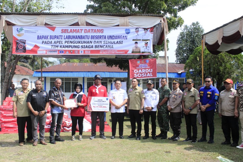 IKNews, LABUHANBATU – Bupati Labuhanbatu dr. H.Erik Adtrada Ritonga,M.K.M, mengukuhkan Kampung Siaga Bencana (KSB), se-Kecamatan Bilahulu di pelataran Kecamatan Bilahulu Aek Nabara, Jum’at (24/2/2023).