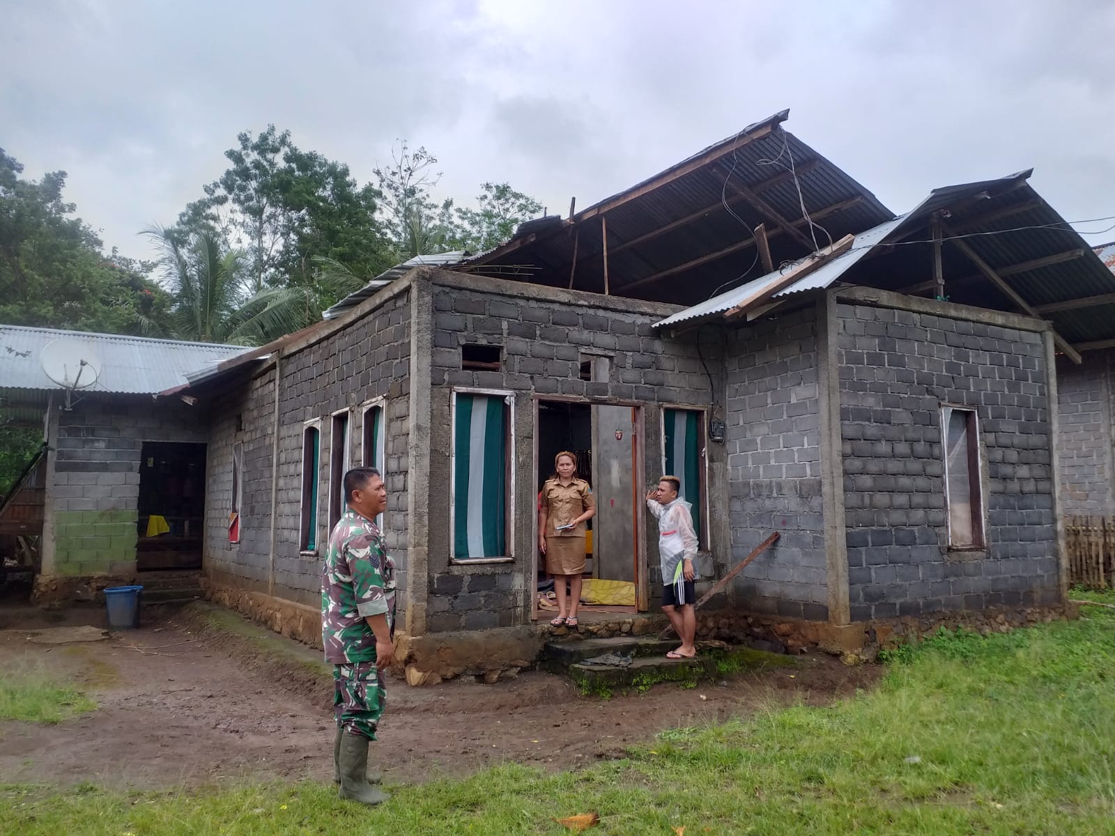 Dilaporkan atap rumah milik Ferry Bolang yang terletak di jaga 1 desa Likupang Dua yang ditinggali oleh keluarga Hatibae-Linda, harus terangkat dan rusak akibat terjangan putting beliung yang terjadi sekira pukul 09.00 WITA.