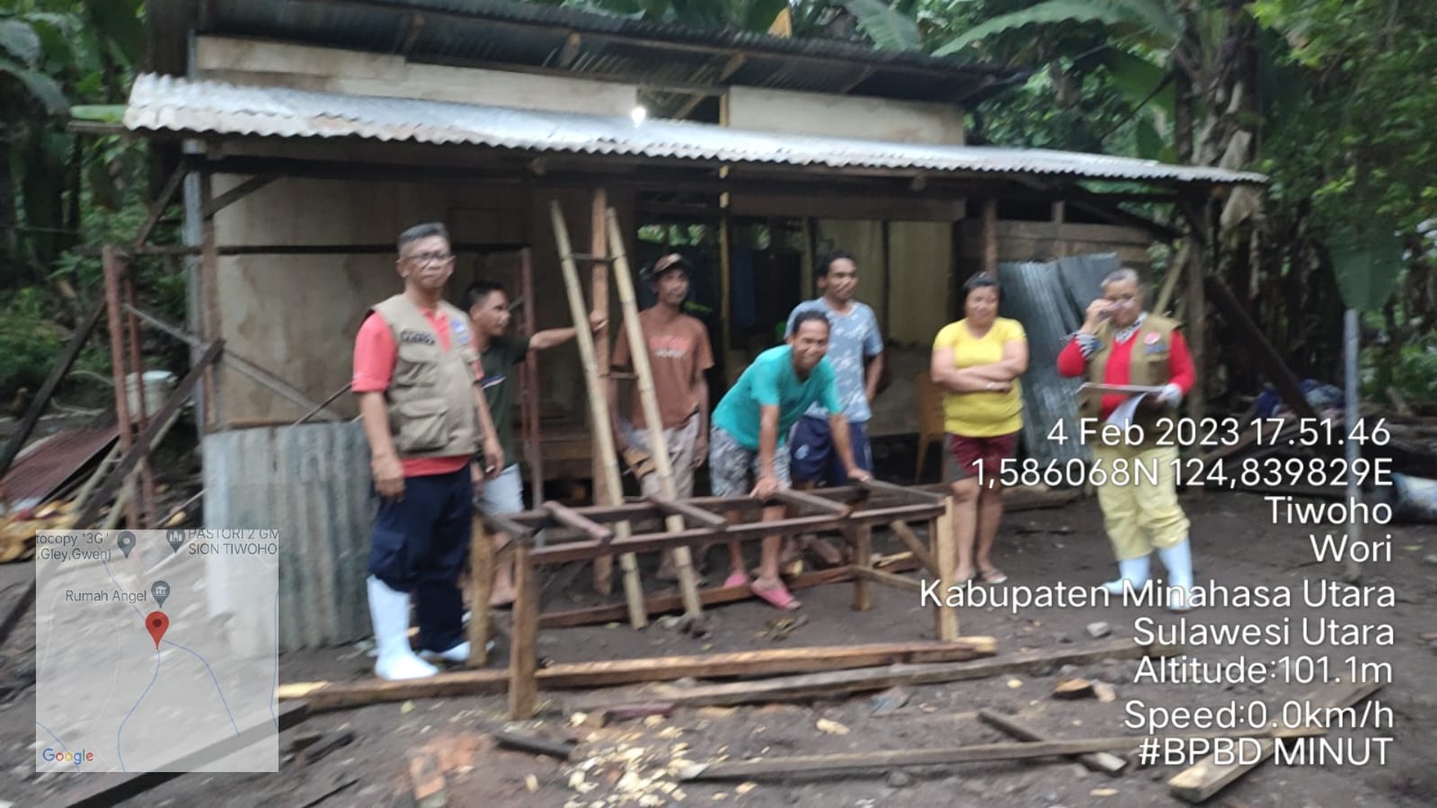 Sementara itu Kepala Pelaksanan BPBD Minut Drs. Theodore Lumingkewas,MM mengatakan usai dari desa Tiwoho, pihaknya melakukan peninjauan dari dekat, kondisi terkini dari jembatan yang menghubungkan Wori – Kima Bajo yang nyaris tidak bisa dilalui akibat ambruk. “Rencananya akan dibuat landasan darurat dari batang pohon Kelapa, sebagai alternativ sehingga jembatan ini aman untuk dilintasi, namun yang lebih teknis adalah dinas PU,” jelas Theo. (Penulis Meiyer Tanod)