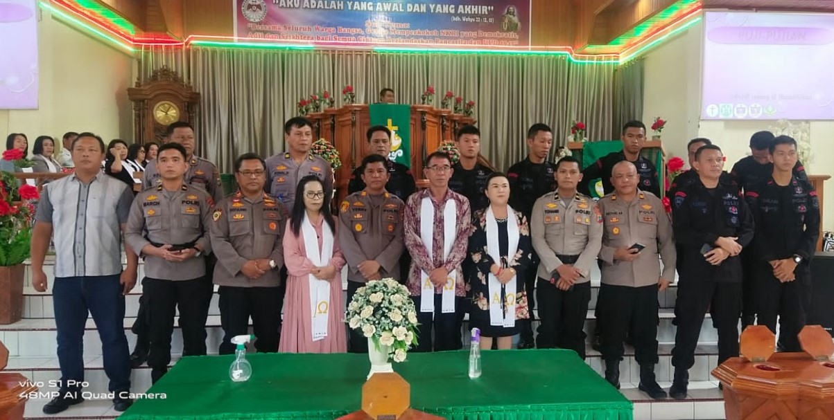 Kapolres Minsel AKBP C. Bambang Harleyanto, SIK; yang beribadah misa di Gereja Katolik Santa Perawan Maria Ratu Rosari di Desa Sinisir, mengajak jemaat dan masyarakat untuk menjaga stabilitas kamtibmas, memelihara rasa persaudaraan dan kedamaian.