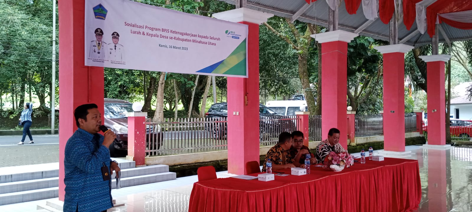 Dalam sambutan pembukaan kegiatan sosialisasi, Bupati Minut Joune JE Ganda, SE, MAP, MM, MSi melalui Asisten I Mayuntu Umbase menyebutkan sosialisasi program perlindungan BPJS Ketenagakerjaan bagi hukum tua dan Lurah serta adalah penting dan pemerintah kabupaten Minahasa Utara, Bupati dan Wakil Bupati memberikan apresiasi kepada Badan Pengelola Jaminan Sosial Ketenagakerjaan cabang Bitung dan Minut yang menggelar sosialisasi ini.