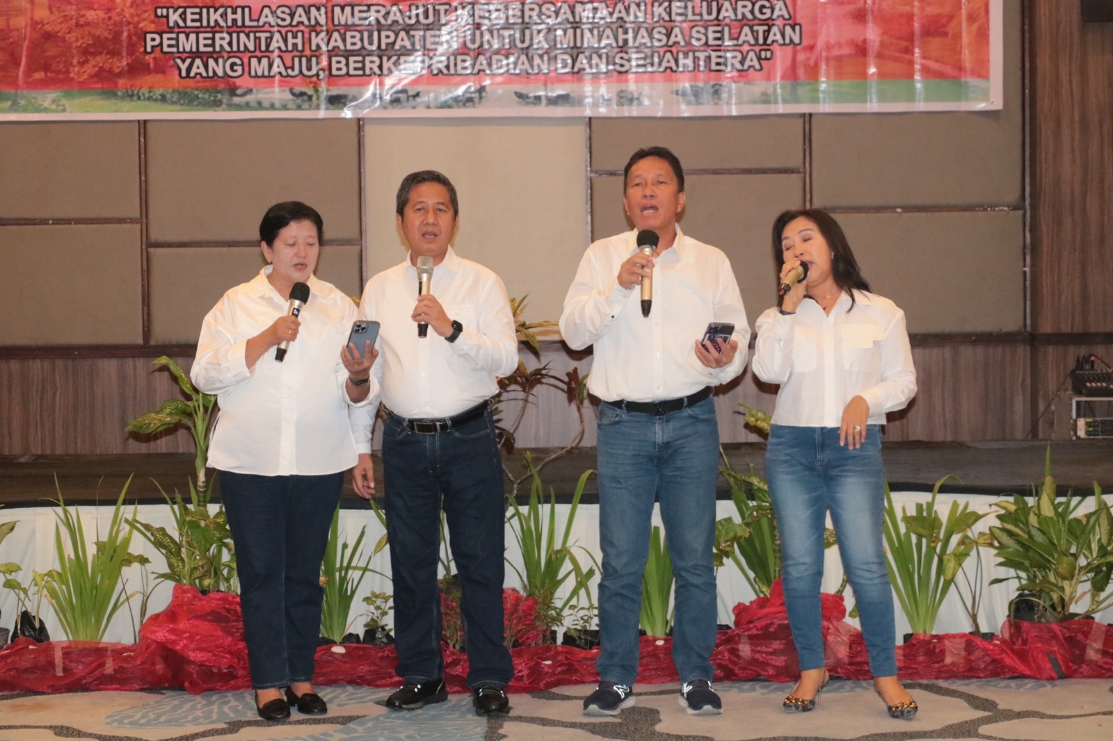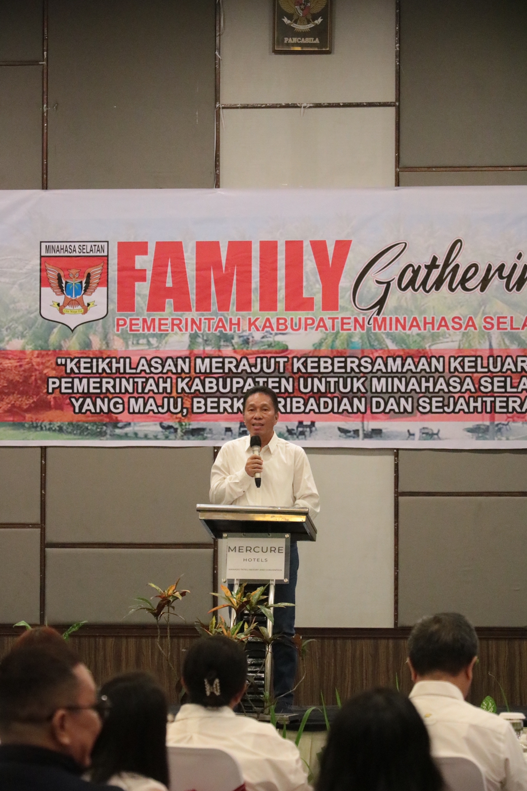 Pelaksanaan Family Gathering Pemerintah Kabupaten Minahasa Selatan yang diikuti Bupati Minahasa Selatan Franky Donny Wongkar, SH., Wakil Bupati Minahasa Selatan Pdt. Petra Yani Rembang bersama Para Pejabat Pimpinan Tinggi Pratama (Eselon 2) Dan Para Kabag Setda Beserta Keluarga (Suami/ Istri Dan Anak2) tersebut mengangkat tema Keikhlasan Merajut Kebersamaan Keluarga Pemerintah Kabupaten Untuk Minahasa Selatan Maju, Berkepribadian Dan Sejahtera.