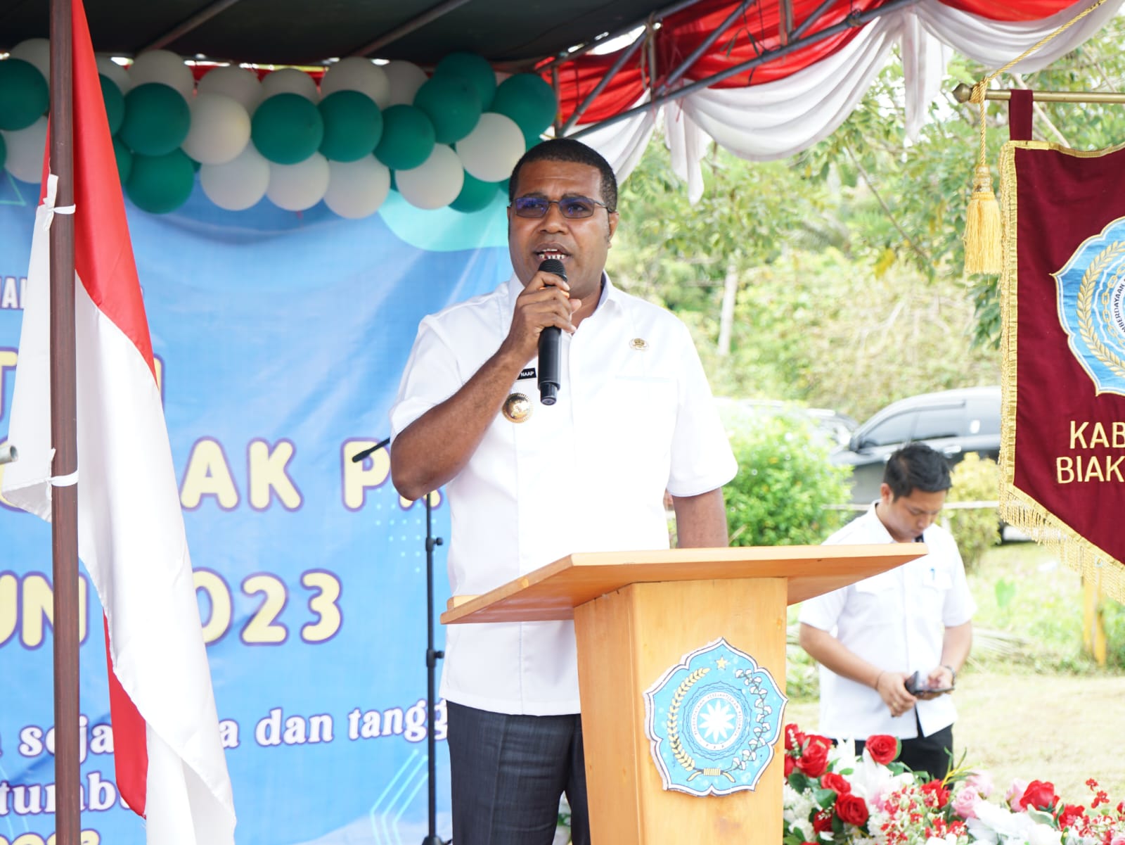 TNews, Biak – Bupati Biak Numfor Herry A. Naap, S.Si., M.Pd hadiri Peringatan Hari Kesatuan Gerak PKK ke-51 Tahun 2023 yang dipusatkan di GKI Firdaus Wodu Makuker, Distrik Andey, Kabupaten Biak Numfor, Rabu (12/04/2023)