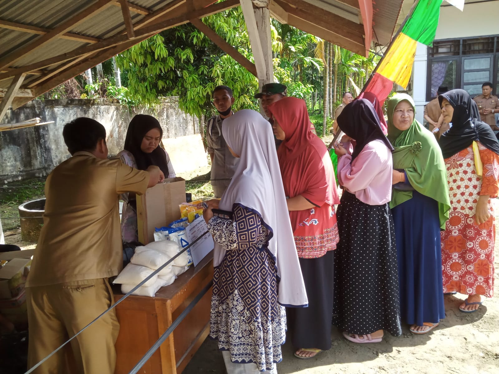 Dalam Pasar Murah kali ini kita berlakukan sistem nomor antrian yang telah disediakan oleh pihak kecamatan masing – masing. Disisi lain bagi Warga yang ingin membeli sistem paket juga disediakan pihak panitia dengan harga per paket @ Rp. 44.000,” jelas Erni.