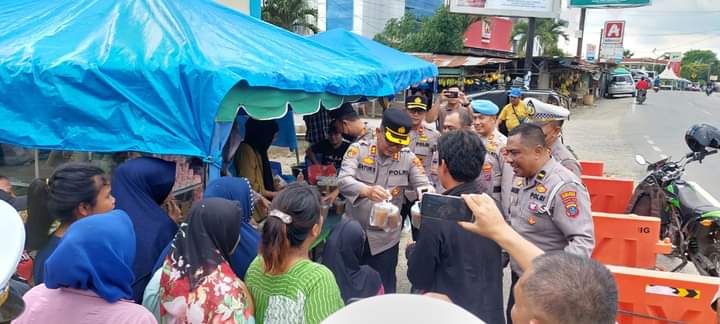 TNews, Labusel-Kapolres labuhan batu Selatan AKBP Catur Sungkowo, S.H., M.H., berbagi Takjil untuk berbuka puasa kepada warga masyarakat Torgamba.