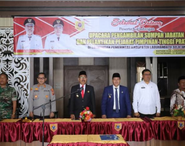 Pengambilan sumpah jabatan serta Pelantikan tersebut di pimpin langsung oleh Bupati Labusel, H. Edimin di dampingi dan disaksikan oleh Wakil Bupati, H. Ahmad Padli Tanjung, S.Ag, Seketaris Daerah Labuhanbatu Selatan, serta unsur FORKOPIMDA, para pejabat lingkungan Kabupaten Labusel dan para undangan lainnya.