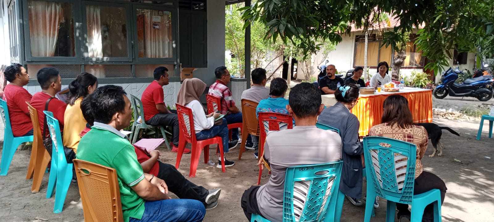 Usai pemaparan semua unsur yang hadir, akibat situasi yang semakin memanas dan sangat mengganggu konsentrasi peserta yang memang mulai berkeringat, atas inisiatif Camat lokasi Rakor terpaksa harus berpindah ke halaman rumah warga, berdekatan dengan Balai Desa yang kondisinya lebih teduh dan nyaman untuk dijadikan lokasi lanjutan Rakor.