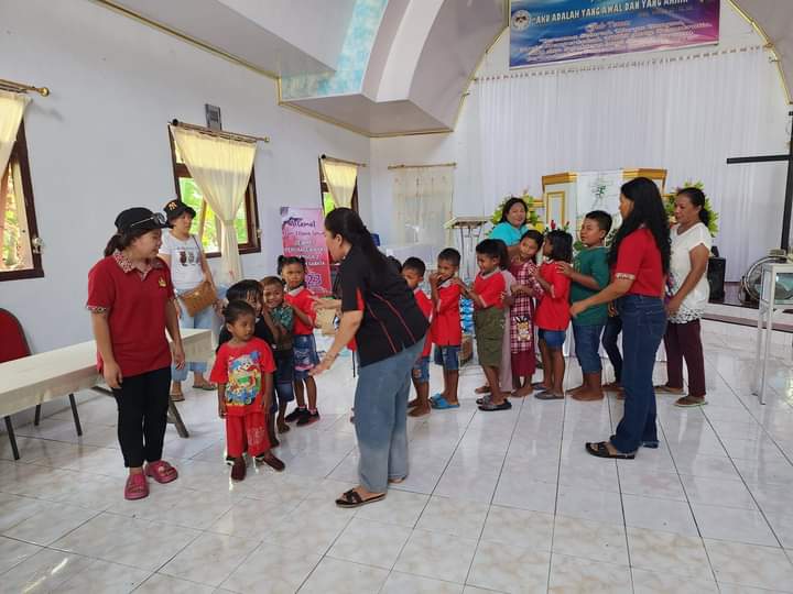 Tiba di desa Gangga 2, rombongan disambut sukacita oleh anggota jemaat GMIM Yerusalem Baru. (Penulis Meiyer Tanod)