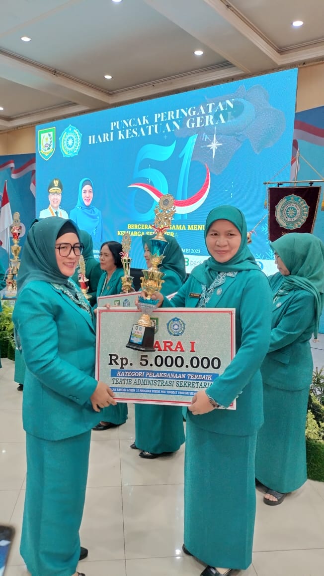 TNews, KABUPATEN KAUR- Luar biasa TP-PKK Kabupaten Kaur menorehkan prestasi sangat baik dengan memboyong 3 piala pada kategori lomba pada Puncak peringatan Hari Kesatuan Gerak PKK Ke-51 Tingkat Provinsi Bengkulu Tahun 2023, diantaranya Juara I Kategori Pelaksanaan Terbaik Tertib Administrasi Sekretariatan, Juara I Bidang Pokja I (Kategori Pelaksanaan Terbaik Program Prioritas Pokja I (PAREDI), dan Juara III Bidang Sekretariat, Kategori Pelaksanaan Terbaik Tertib Administrasi Dasawisama.