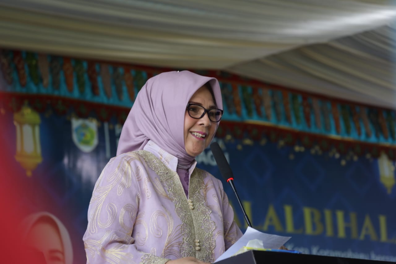 Wali Kota dalam sambutannya menyampaikan ucapan selamat Hari Raya Idul Fitri 1444 Hijriah kepada seluruh masyarakat Kecamatan Kotamobagu Barat.