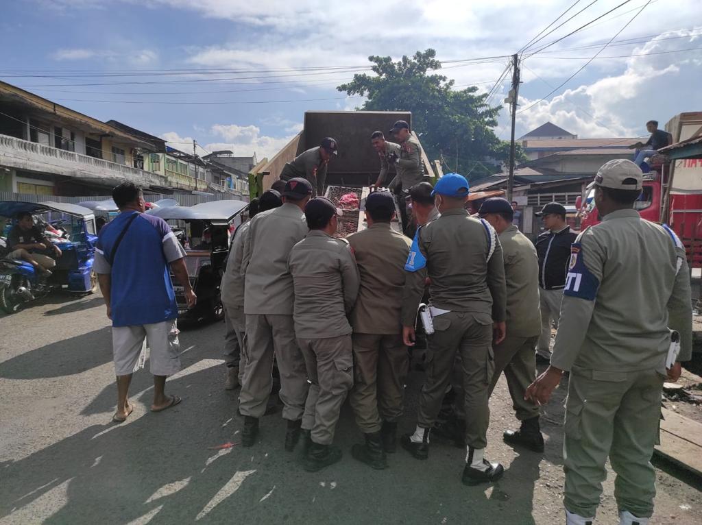 TNews, KOTAMOBAGU – Dinas Polisi Pamong Praja dan Damkar Kota Kotamobagu bersama Dinas Perdagangan Koperasi dan UKM dan Dinas Perhubungan melakukan penertiban pedagang yang menggunakan bahu jalan dan trotoar di area Eks Pasar Serasi dan Pasar 23 Maret Kotamobagu, Selasa (6/6/2023).