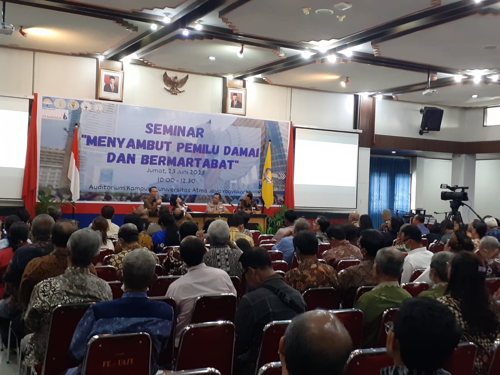 TNews, YOGYAKARTA – Tokoh Katolik dan Kristen DIY mendukung pelaksanaan Pemilu tahun 2024 yang damai, bersih, berintegritas dan bermartabat. Pernyataan dukungan ini berbarengan dengan seminar “Menyambut Pemilu Damai dan Bermartabat” yang diselenggarakan di Auditorium Kampus III Universitas Atma Jaya Yogyakarta, Jumat (23/6/2023)