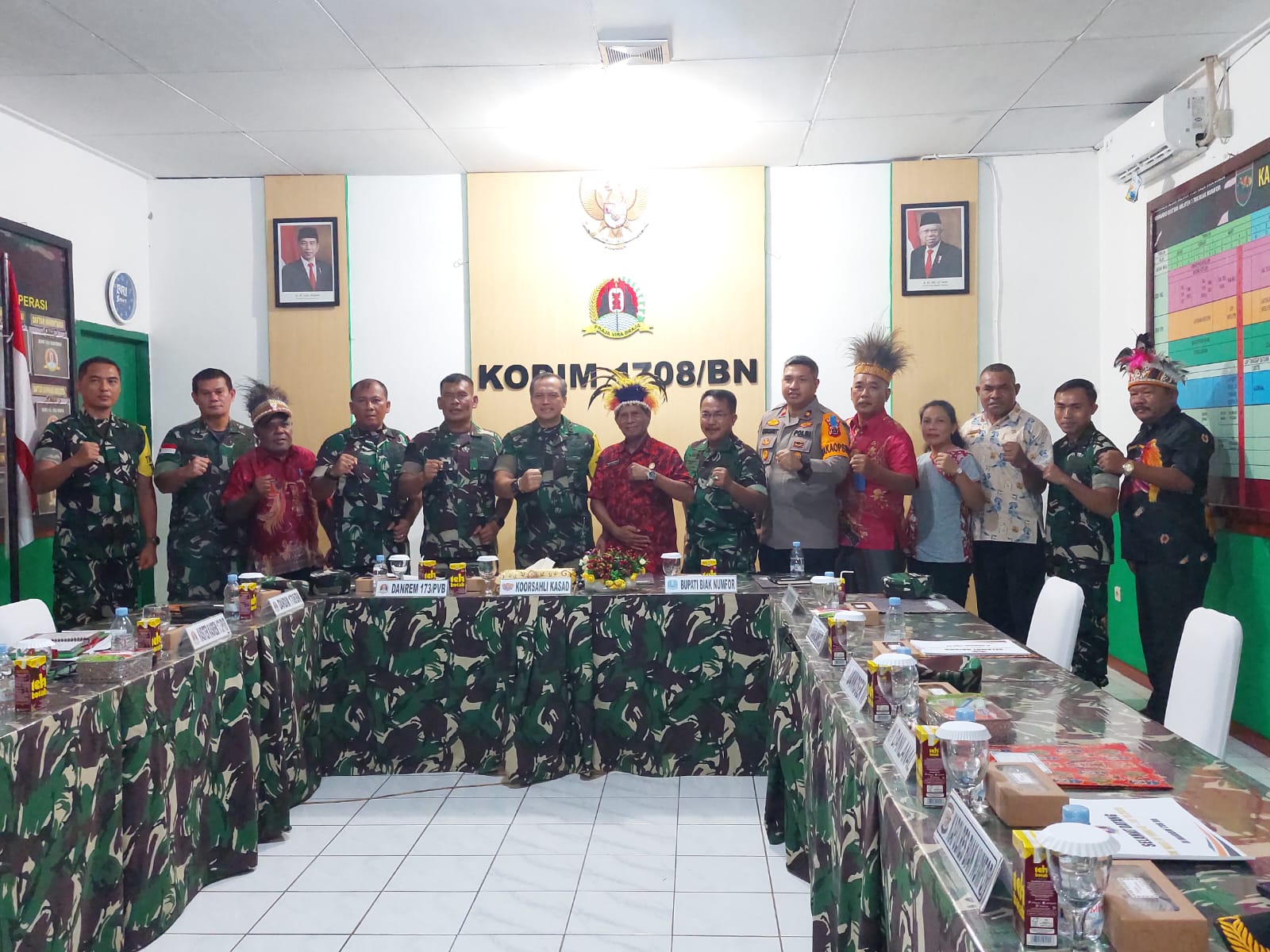 TNews, Biak – Wakil Bupati Biak Numfor Calvin Mansnembra, SE., M.B.A hadiri pemaparan Dandim 1708/BN terkait pelaksanaan TNI Manunggal Membangun Desa (TMMD) ke-117, di Aula Makodim 1708/BN, Kamis (20/7)