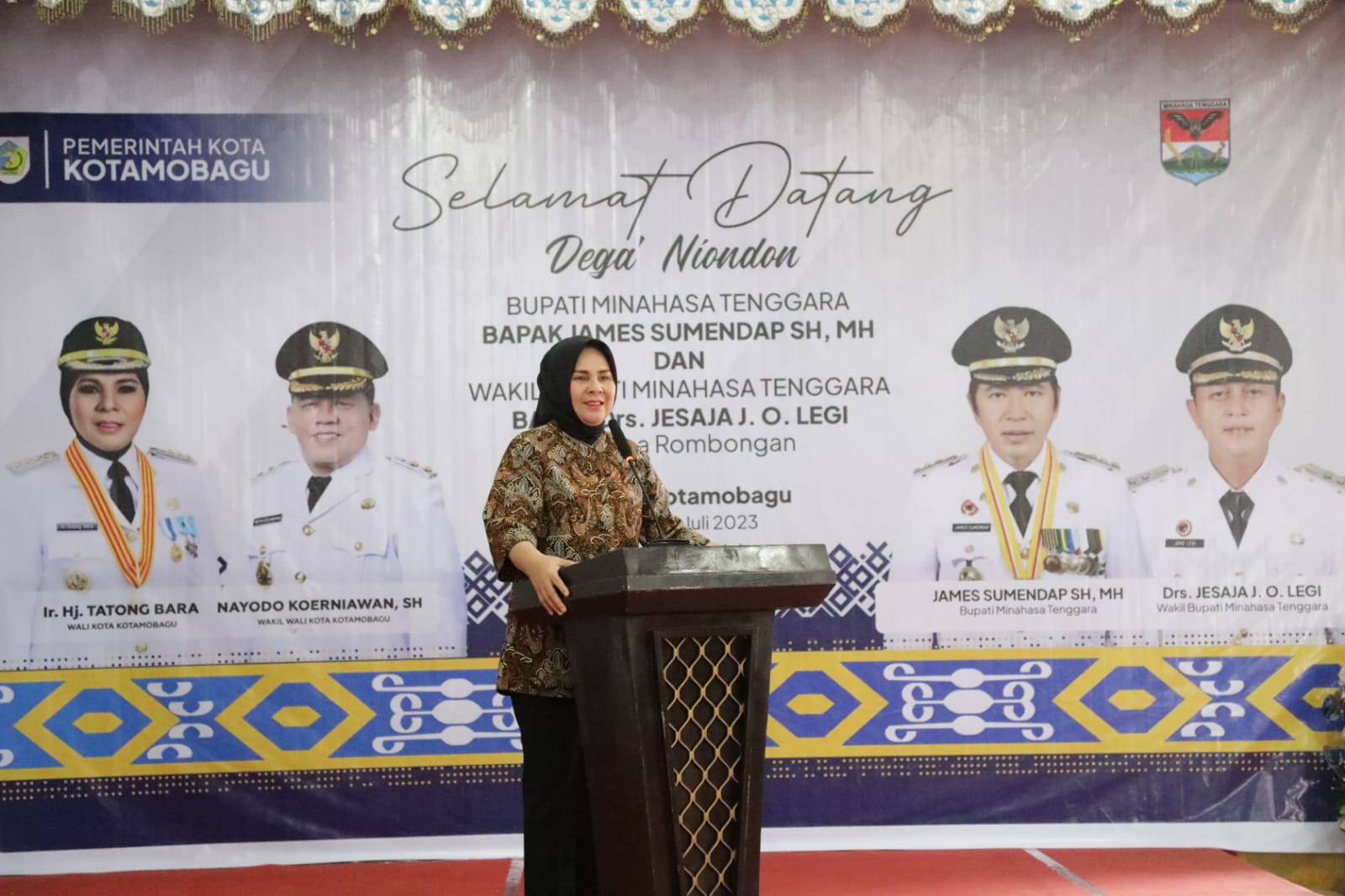“Atas nama pribadi, keluarga dan atas nama Pemerintah Daerah Kota Kotamobagu menyampaikan ucapan selamat datang, ”Dega Niondon” kepada Bupati dan Wakil Bupati beserta rombongan, kami merasa bangga hari ini mendapatkan kunjungan, dan Insya Allah saya akan membalas kunjungan pak Bupati di Minahasa Tenggara. Terima kasih sudah datang di Kota Kotamobagu” ujar Wali Kota.