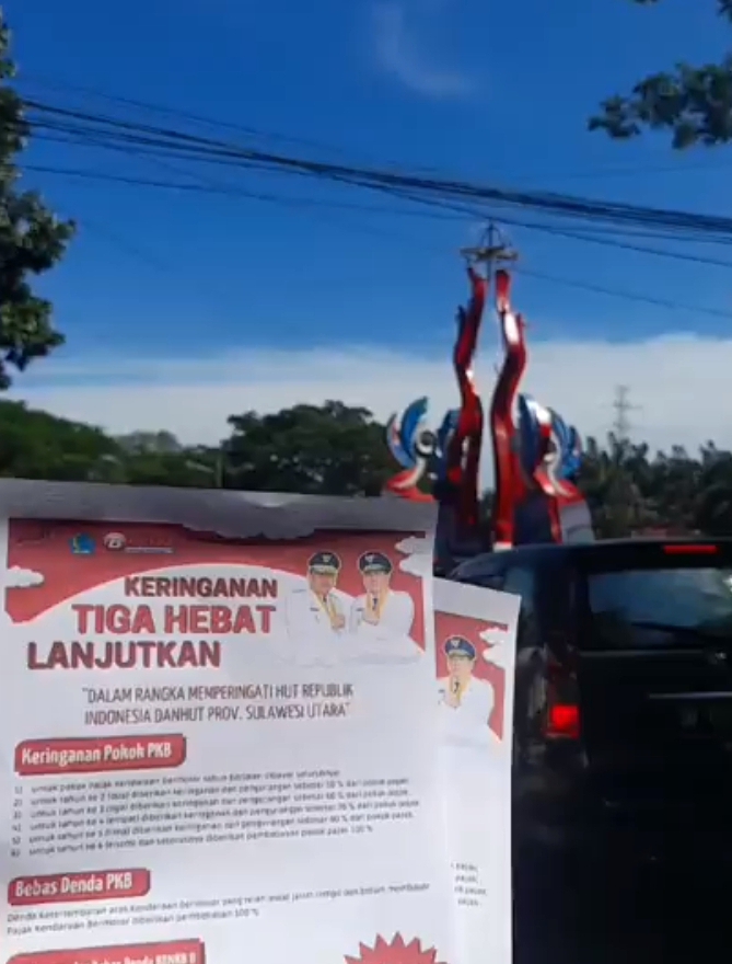 TNews, Minut Sulawesi Utara – Memperingati HUT Proklamasi Kemerdekaan RI serta HUT Provinsi Sulawesi Utara tahun 2023, Samsat Minahasa Utara seragam dengan Samsat yang lain di wilayah Sulawesi Utara (Sulut), memberlakukan Keringanan Tiga Hebat Lanjutkan bagi wajib pajak kendaraan bermotor.