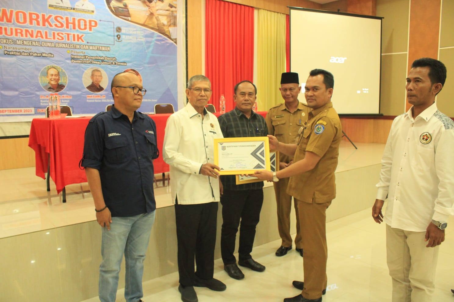 T.Nees.com- Mewakili Bupati Labuhanbatu dr. H. Erik Adtrada Ritonga, MKM, Asisten l Pemerintahan dan Kesra Drs. H. Sarimpunan Ritonga, M.Pd membuka Workshop Jurnalistik Persatuan Wartawan Indonesia (PWl) Labuhanbatu, di Ballroom Platinum Hotel, Jalan Jend. Ahmad Yani, Kecamatan Rantau Selatan. Senin (4/9/2023).