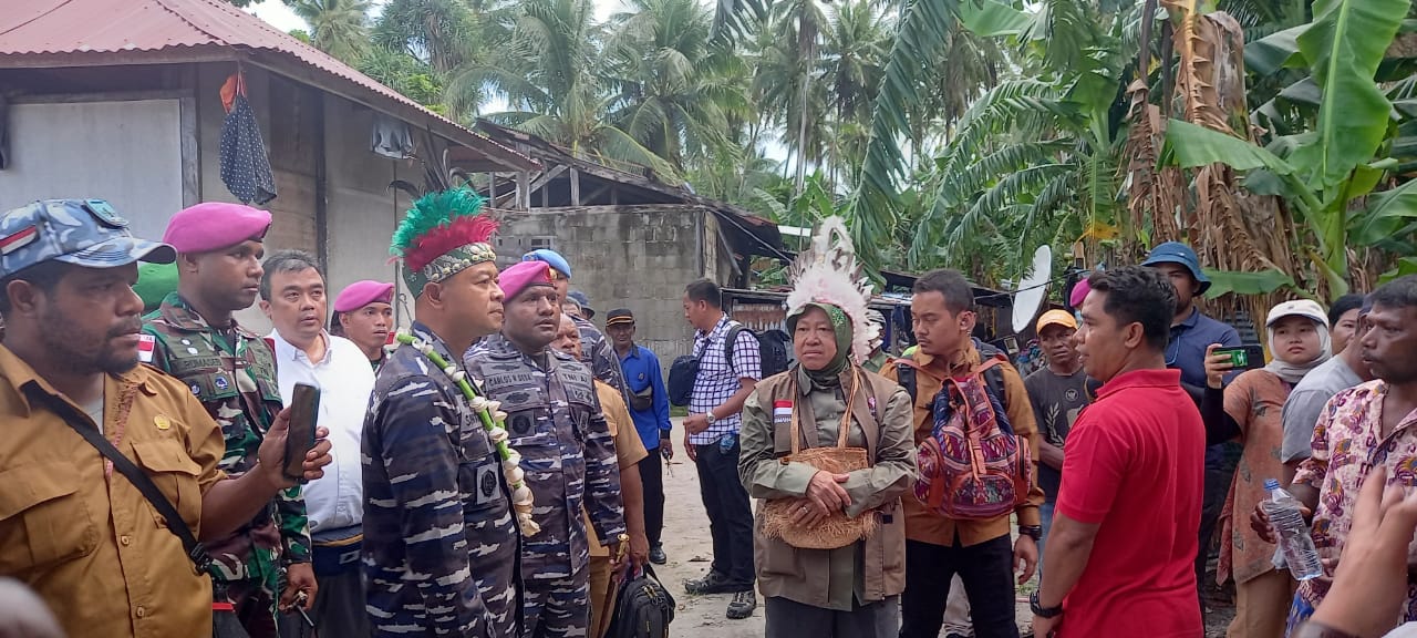 Menteri Sosial RI Tri Rismaharani Tiba di Pulau Mapia langsung mengunjungi beberapa lokasi penyerahan bantuan, Selasa (12/9)