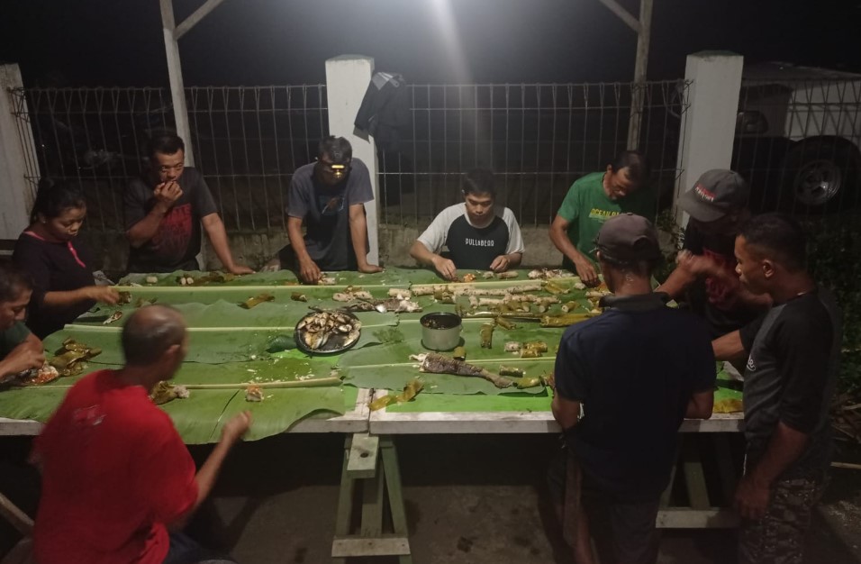 Di mana, setelah panen, para petani menggelar acara makan Bersama yang dilasanakan di lokasi kebun kelapa.