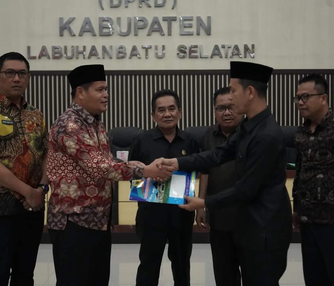 TNEWS, LABUSEL – Wakil Bupati Labuhanbatu Selatan H. Ahmad Padli Tanjung, S.Ag hadiri Sidang Paripurna DPRD Kabupaten Labuhanbatu Selatan tentang Penandatanganan Berita Acara Persetujuan Bersama Rancangan Peraturan Daerah tentang Perubahan Anggaran Pendapatan dan Belanja Daerah tahun Anggaran 2023 di ruang paripurna DPRD Labuhanbatu Selatan, Kamis (21/09/2023).