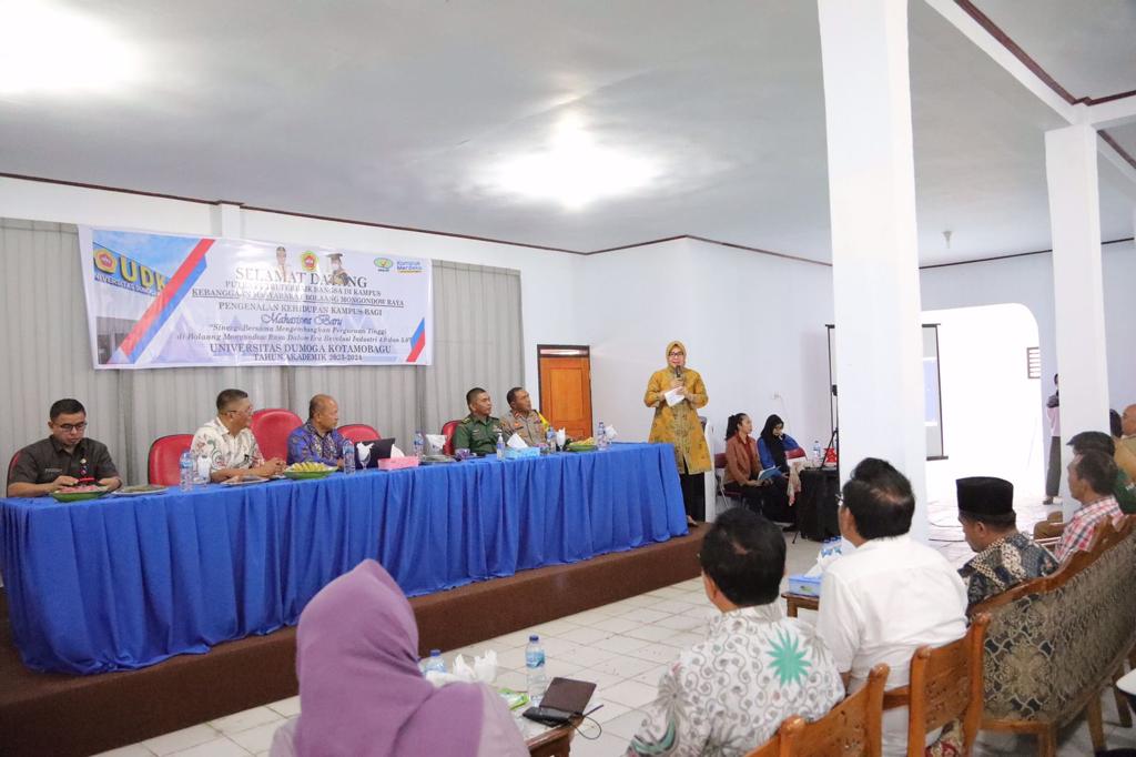 Wali Kota dalam sambutannya menyampaikan apresiasi yang tinggi dan rasa bangga kepada Ketua Yayasan, Rektor dan seluruh Civitas Akademika UDK Kota Kotamobagu yang terus berkomitmen untuk memajukan Universitas Dumoga Kota Kotamobagu.