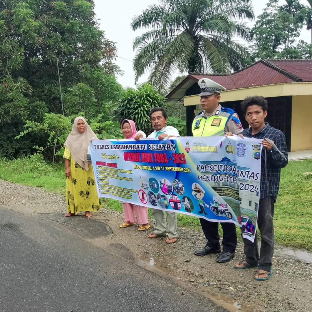 TotabuanNews, Labusel – Dalam rangka Ops Zebra Toba 2023 Personil Sat Lantas Polres Labusel yang dipimpin oleh Aiptu G. Ginting bersama 2 (dua) Personil Sat Lantas lainnya melaksanakan kegiatan Dikmas Lantas kepada para pengendara di Jalinsum Kec. Sei kanan Kabupaten Labuhan Batu Selatan, Rabu (06/09/23).