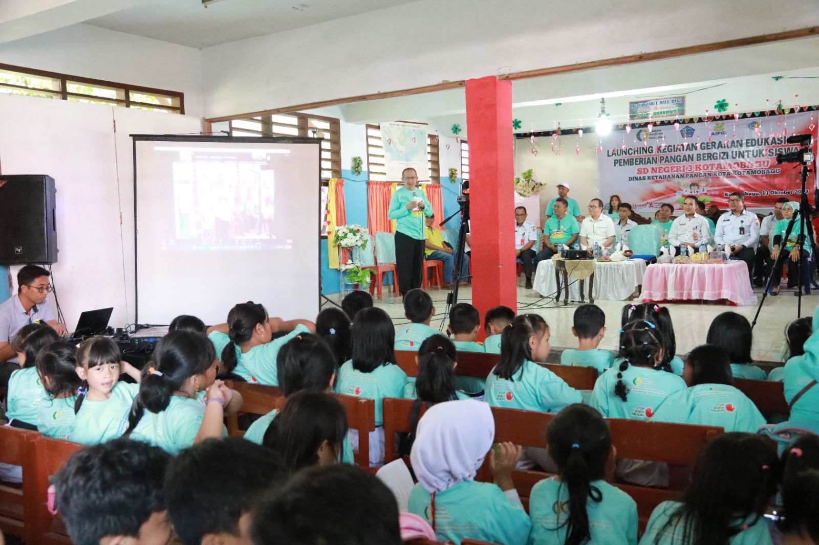 TNews, KOTAMOBAGU – Penjabat (Pj) Wali Kota Kotamobagu Dr. Drs. Hi. Asripan Nani, M.Si., menghadiri Launching Gerakan Edukasi dan Pemberian Pangan Bergizi untuk Siswa (Genius) di Kota Kotamobagu tahun 2023, di SDN 3 Kotamobagu, Rabu (11/10/2023).