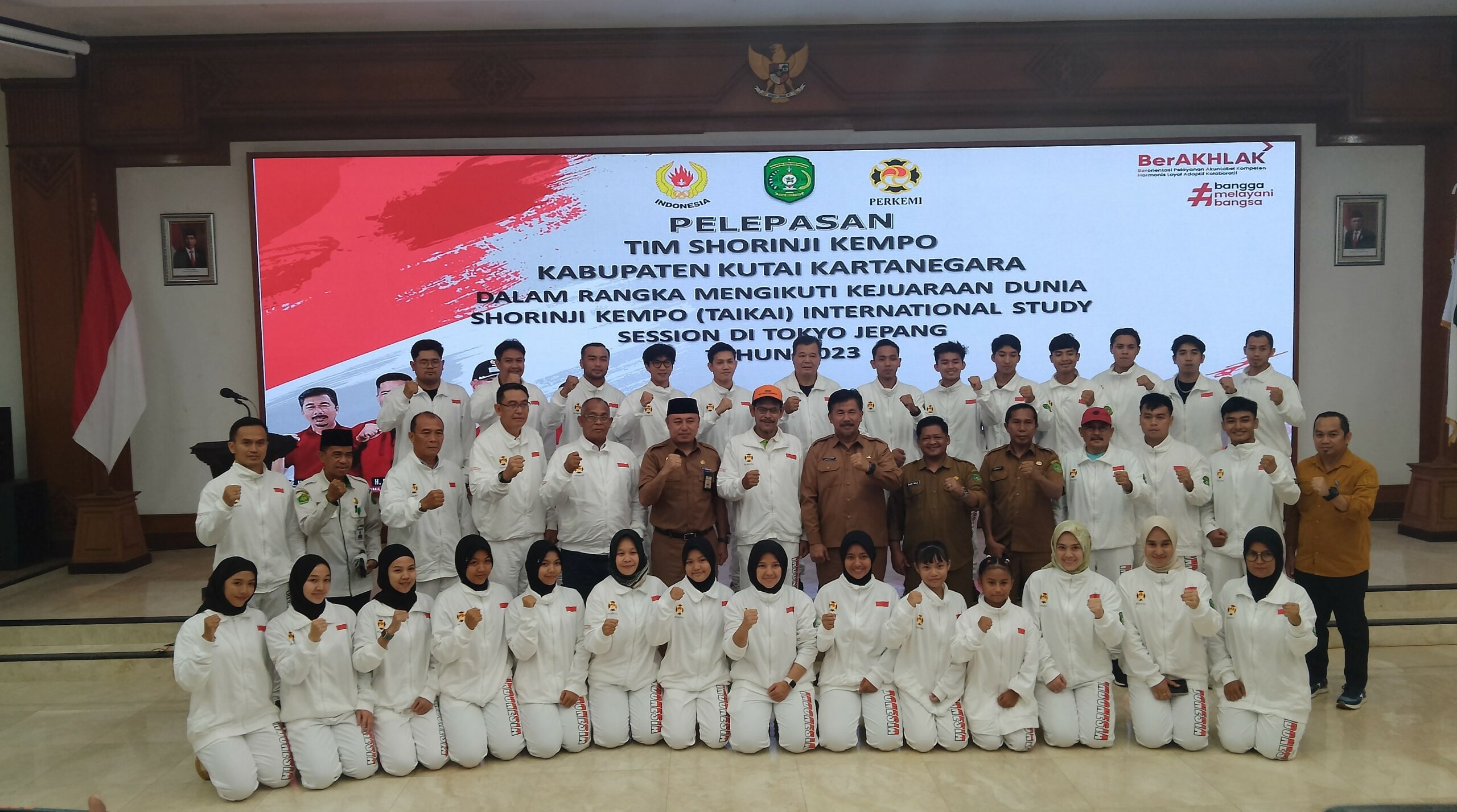 TNews, Kukar – Suasana penuh semangat menggema di Aula Serba Guna Kantor Bupati Kukar pada Selasa (3/10/2023), saat 30 peserta Shorinji Kempo Kabupaten Kutai Kartanegara secara resmi dilepas untuk mewakili Indonesia dalam kejuaraan dunia Shorinji Kempo (Taikai) Internasional Study Sessions di Tokyo, Jepang 2023.