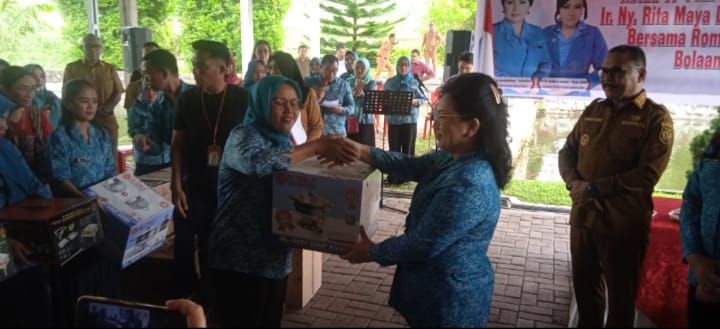 Tak luput Ketua TP PKK Kabupaten Bolmong Iryanti Suleha Mokodompit Uswanas, S.Sos, mengapresiasi bantuan yang diberikan oleh Ketua TP PKK Provinsi Sulut Ir. Rita Maya Dondokambey Tamuntuan, terutama dalam bentuk bantuan alat dapur yang diserahkan kepada pengurus TP-PKK Kecamatan dan Desa.