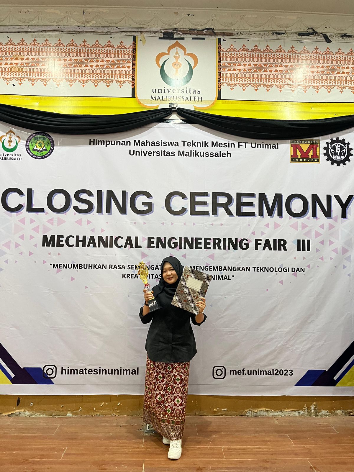 Kegiatan LKTI Tingkat Nasional tersebut diraih Tim Mahasiswa delegasi Himpunan Mahasiswa Teknik Mesin (Himatesin) Fakultas Teknik Universitas Malikussaleh sebagai juara pertama, dengan thema LKTI “Mengembangkan potensi mahasiswa yang kreatif, inovatif dan kompetitif dalam mewujudkan sustainable development goals (SDGs) 2030”.