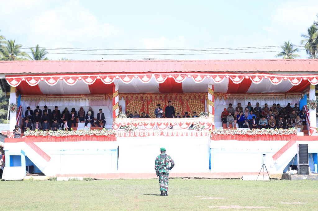 Saat membacakan amanat menteri sosial Republik Indonesia, Tri Rismaharini. Pj Wali Kota Asripan Nani Dengan tegas menyampaikan pesan bahwa kekayaan alam Indonesia dan potensi penduduknya harus dielola dengan bijak untuk kejayaan bangsa.