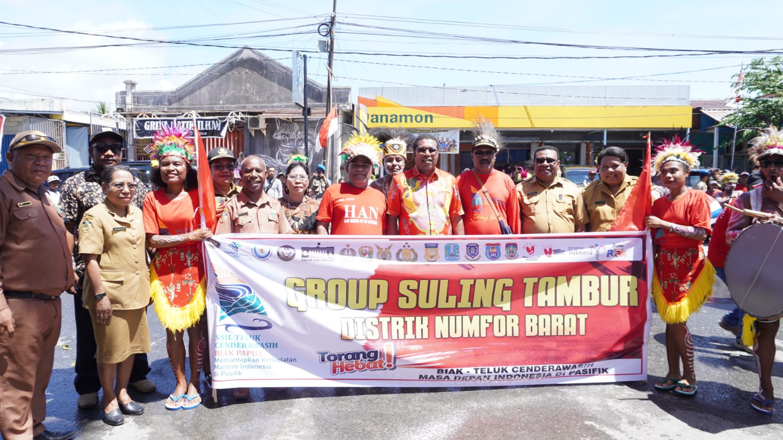 TNews, Biak – Plt Sekda Biak Numfor Zacharias L. Mailoa melepas peserta parade nusantara yang dilaksanakan sebagai bagian dalam rangkaian Sail Teluk Cendrawasih (STC) Papua 2023, di Depan Kantor Telkom Biak, Senin (27/11) kemarin