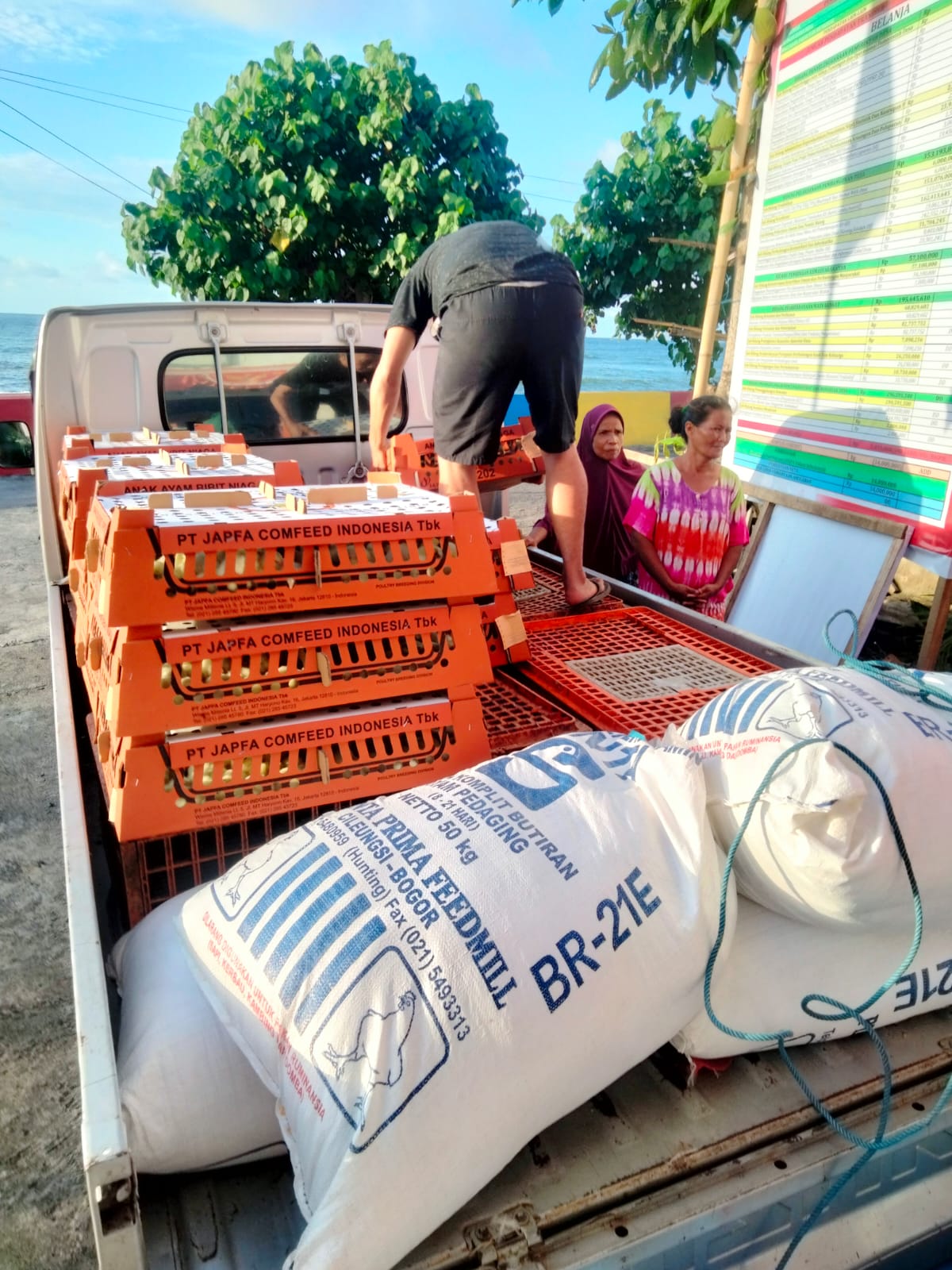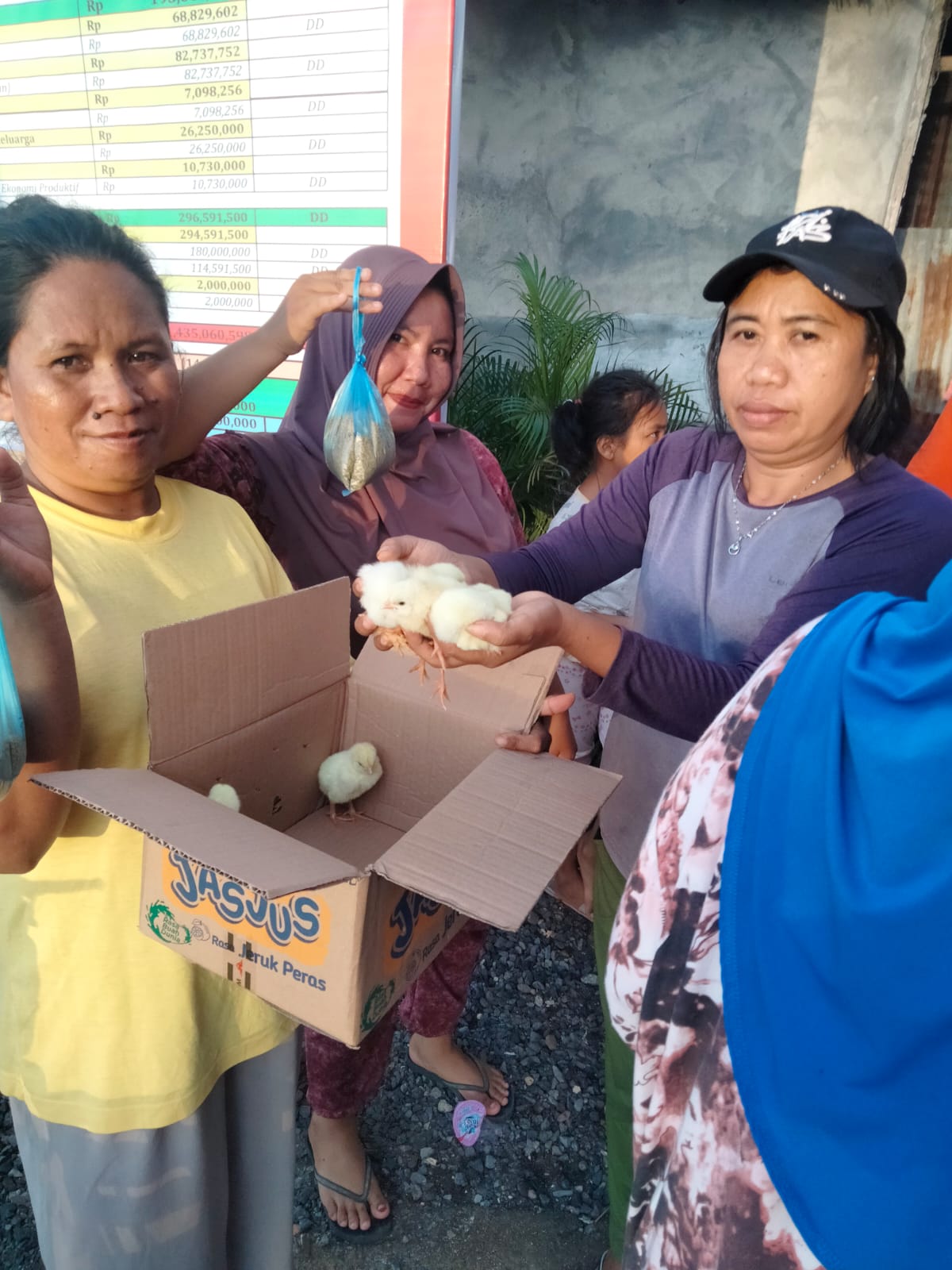Menurut Saprin Fanah, penyaluran ini terbagi pada bibit Ayam unggul sebanyak 5 ekor untuk 502 KK warga desa dan alat serta bibit tanaman kepada masyarakat petani.