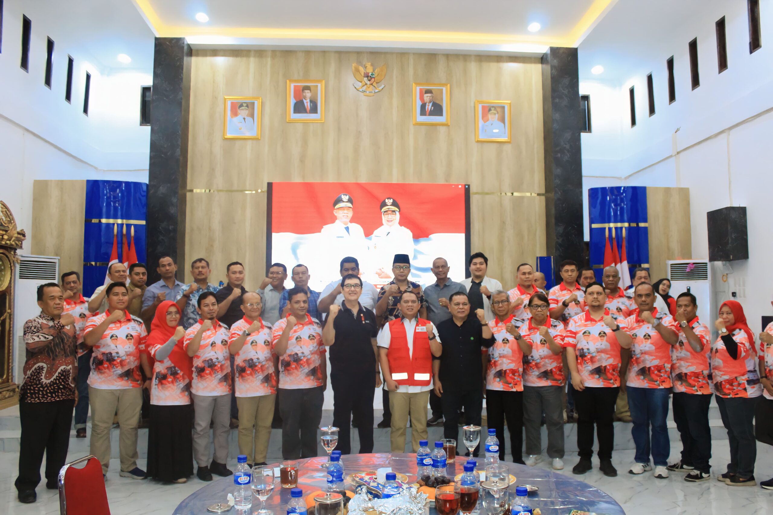 TNews.com, Labuhanbatu -Bupati Labuhanbatu dr.H.Erik Adtrada Ritonga,MKM menggelar ramah tamah dan jamuan makan malam bersama Ketua Palang Merah Indonesia (PMI) Provinsi Sumatera Utara Dr. Rahmat Shah beserta rombongan di Kediaman Rumah Dinas Bupati. Senin Malam(11/12/2023).