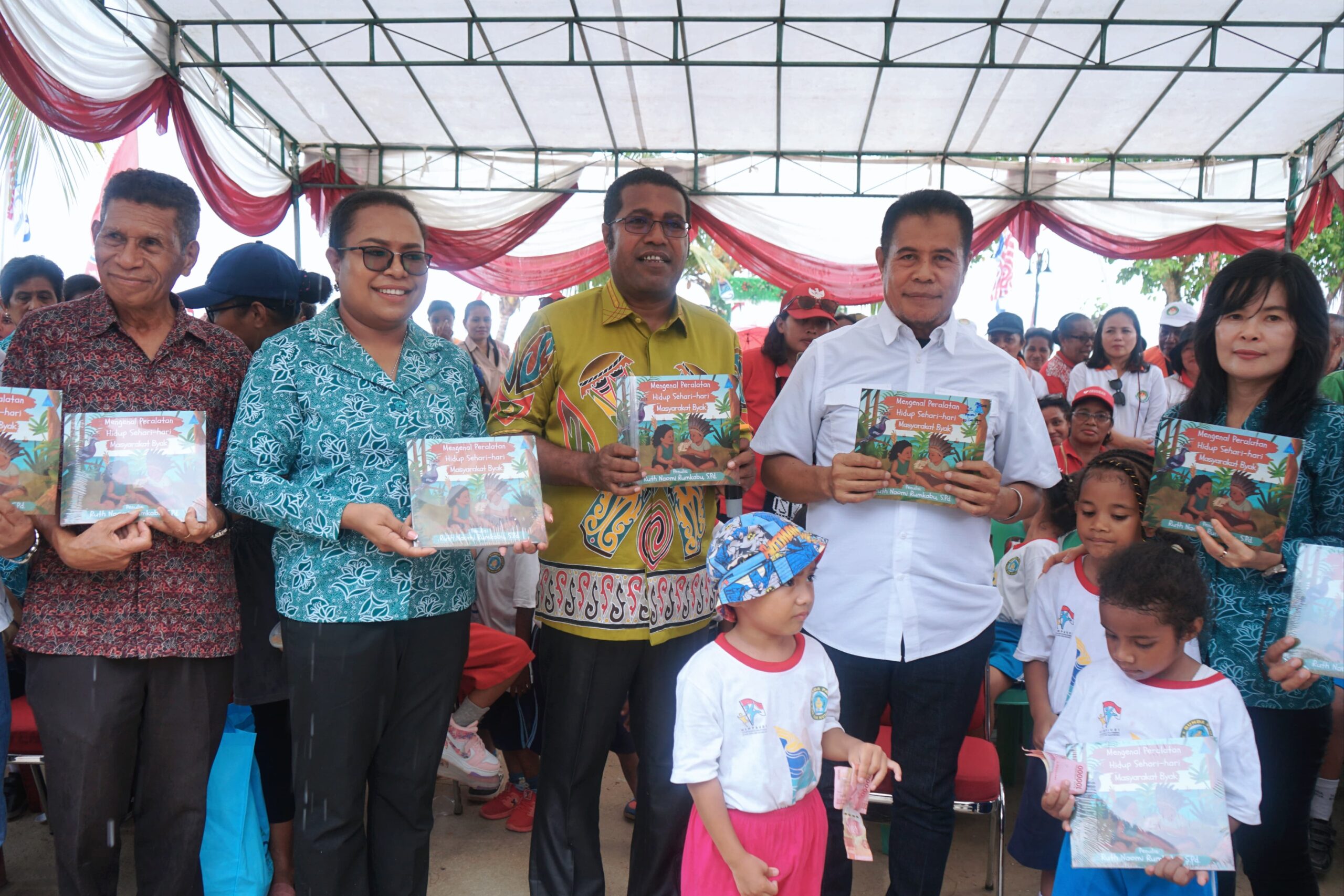 “Terima kasih kepada Bunda PAUD yang telah menghasilkan suatu karya bagi anak – anak untuk bisa belajar menggunakan bahasa Byak, kalau kita pelajari buku ini dua hari saja kita sudah pintar dan ini bisa digunakan dalam kehidupan sehari – hari,” kata PJ Gubernur saat kunjungan kerja di Biak, pekan lalu