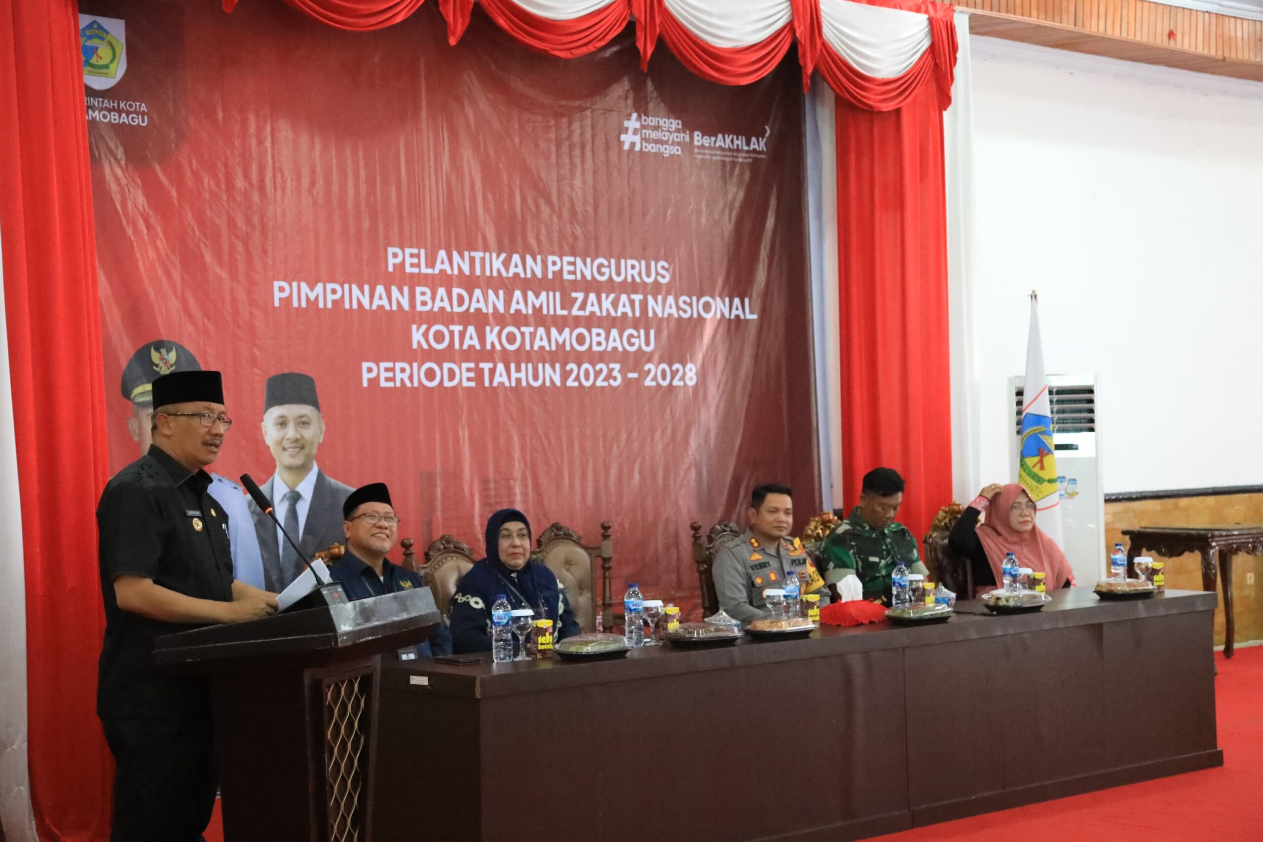 Dalam sambutannya, Pj Wali Kota menyampaikan ucapan selamat kepda pimpinan dan seluruh jajaran pengurus baznas Kota Kotamobagu Periode 2023 – 2028, yang baru dilantik.