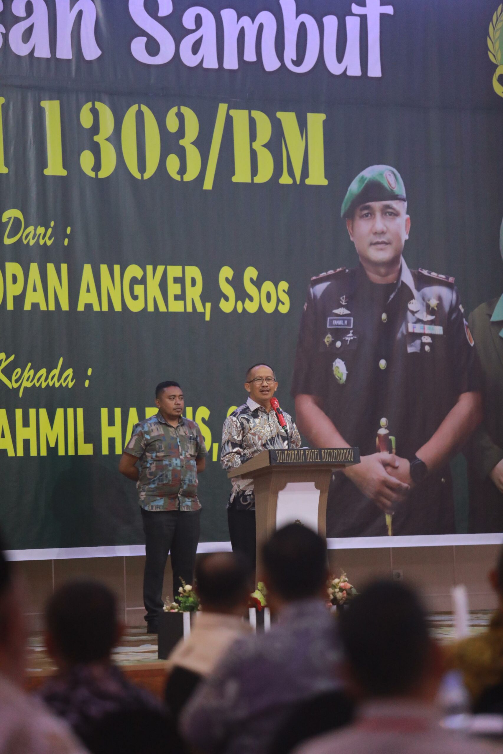 “Atas nama pemerintah se – Bolaang Mongondow Raya, juga kami menyempaikan ucapan Selamat Datang kepada Dandim 1303 Bolaang Mongondow., Bapak. Letkol. Inf. Fahmil Harris., S.I.P. di wilayah Bolaang Mongondow Raya. semoga sukses dan mari kita bergandengan tangan membangun Bolaang Mongondow Raya yang lebih baik di masa yang akan datang,”tambahnya.